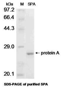 Recombinant protein A was expressed in recombinant E. coli and purified by HPLC.