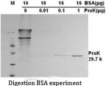 Proteinase K is a non-specific endoproteinase, which is a serine protease that can cleave ester bonds and peptide bonds connected to the carboxyl ends of aliphatic amino acids, hydrophobic amino acids and aromatic amino acids. The molecular weight is 28.9 kDa (monomer). It is active at pH 4 to pH 12. It is also stable in the presence of SDS, urea or EDTA. It can cleave the carboxy terminal peptide bonds of aliphatic and aromatic amino acids, and is used for the degradation of proteins in biological samples. This enzyme has been decolorized and purified by chromatography to remove RNA and DNA, and the activity of other miscellaneous enzymes can not be detected. Because proteinase K is stable in urea and SDS, and has the ability to degrade natural proteins, the smallest polypeptide that is hydrolyzed is a tetrapeptide molecule.